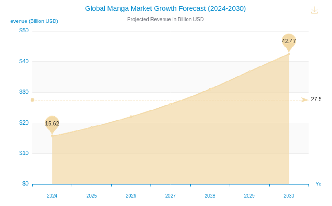 The manga industry is not just growing; it’s experiencing a meteoric rise. The global manga market was valued at approximately $15.6 billion in 2024 and is projected to soar to over $42 billion by 2030, driven by a compound annual growth rate (CAGR) of nearly 19%. This expansion is fueled by anime adaptations, social media trends, and a growing appreciation for Japanese pop culture worldwide.