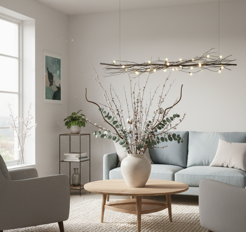 Scandinavian design celebrates simplicity, light, and connection to nature — and pyntekvister embody all three. They bring the outdoors inside, helping to soften modern interiors that can sometimes feel too clean or minimal. A few well-placed branches in a neutral ceramic vase can instantly create visual balance without cluttering the space.